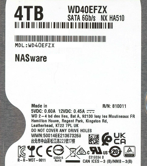 Western Digital製HDD■WD40EFZX■4TB SATA600 5400■新品未開封