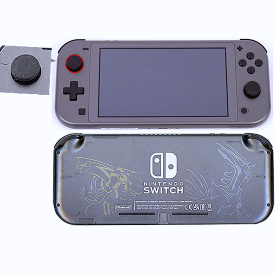 「Nintendo Switch Lite」では初めてとなる、メタリックグレーの本体にブラックのボタンを採用し、裏面には伝説のポケモン「ディアルガ」と「パルキア」を、それぞれ銀色と金色のラインアートで描いています。