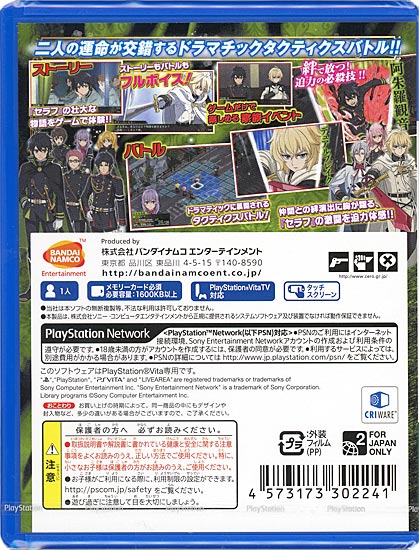 ☆初回封入特典:「終わりのセラフ」PlayStation Vita用テーマ、デジタルイラストギャラリー、豪華声優陣によるキャストトーク(音声のみの仕様となっております。)がダウンロードできるプロダクトコード付き!