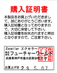 お手数ですが、お客様の方でメーカー発行の保証書に購入証明書を貼付していただき、大切に保管していただきますよう、お願い致します。